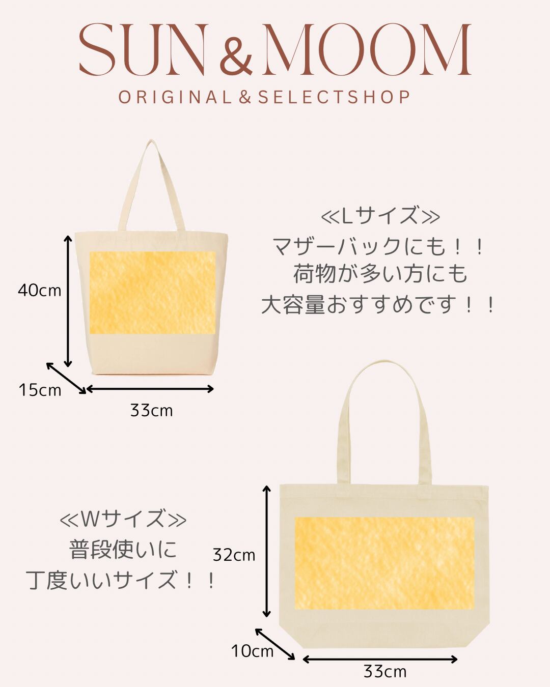 ★Wサイズ (32㎝×33㎝マチ10㎝)